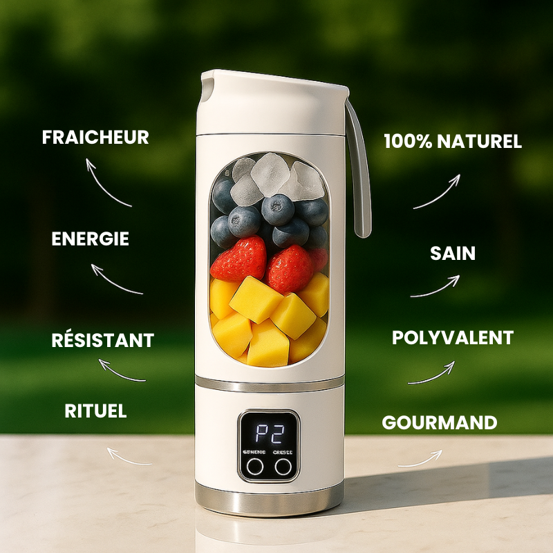 Oui, c'est sa force ! Léger et sans fil, il est votre allié ultime pour une nutrition saine en déplacement. Du bureau à la salle de sport, en passant par vos rendez-vous, il vous suit partout pour que vous restiez au top de votre forme, sans compromis.